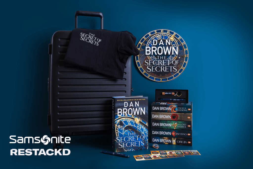 One lucky winner will receive a stylish Samsonite Restackd suitcase packed with goodies: a hardback copy of The Secret of Secrets, signed by Dan Brown; a set of the five Robert Langdon thrillers; plus The Secret of Secrets merchandise (including t-shirt, pen and torch set, bookmark and enamel pin badge).
